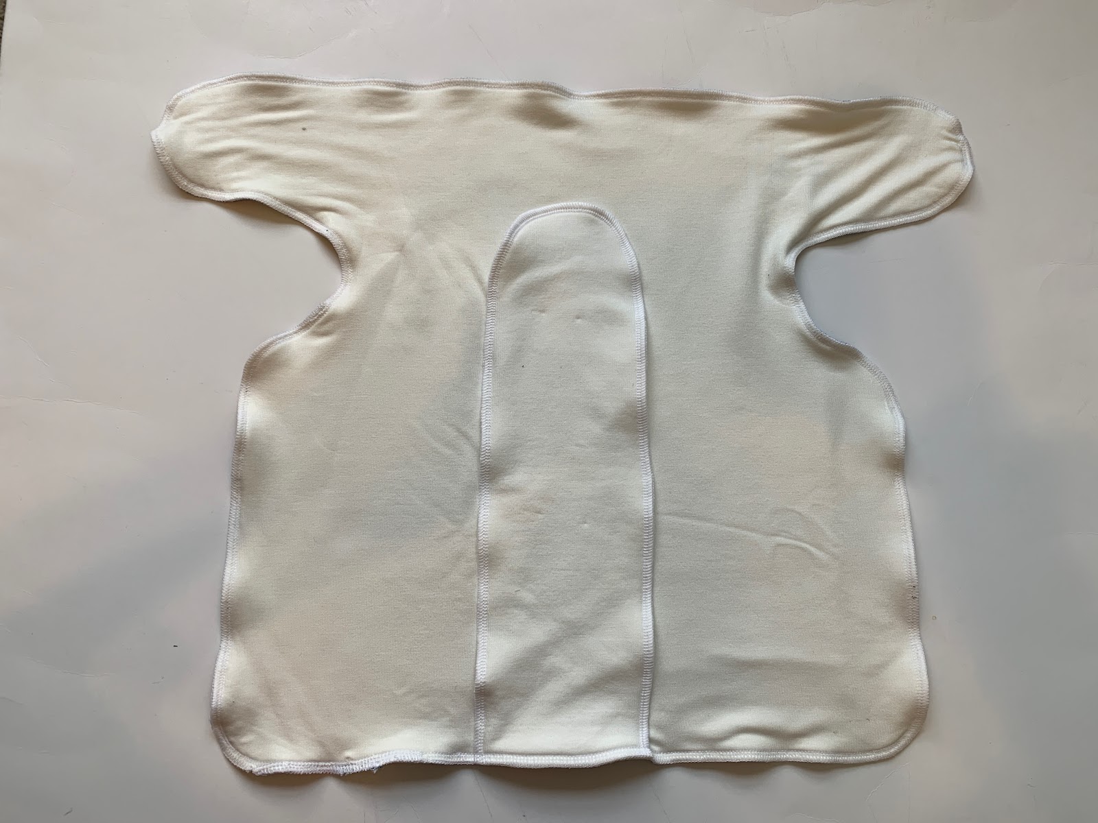 These diapers are shaped so that the bottom portion is tri-folded to the center to create multiple layers of absorption, while the wings up top wrap around the baby's hips and hold everything in place. You can add extra "boosters" in the bottom tri-fold if you need more absorbency.